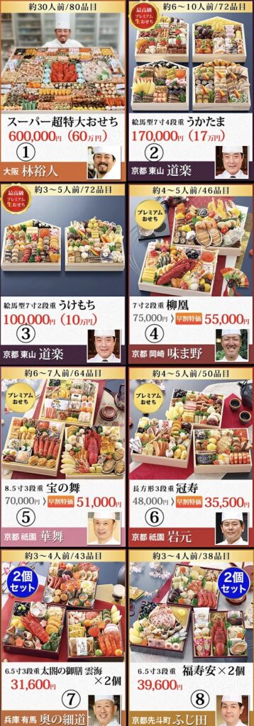 今年はなんと60万円のおせちが登場!!!17万円のおせちでもびっくりなのに、今年は大盤振る舞いですね~!